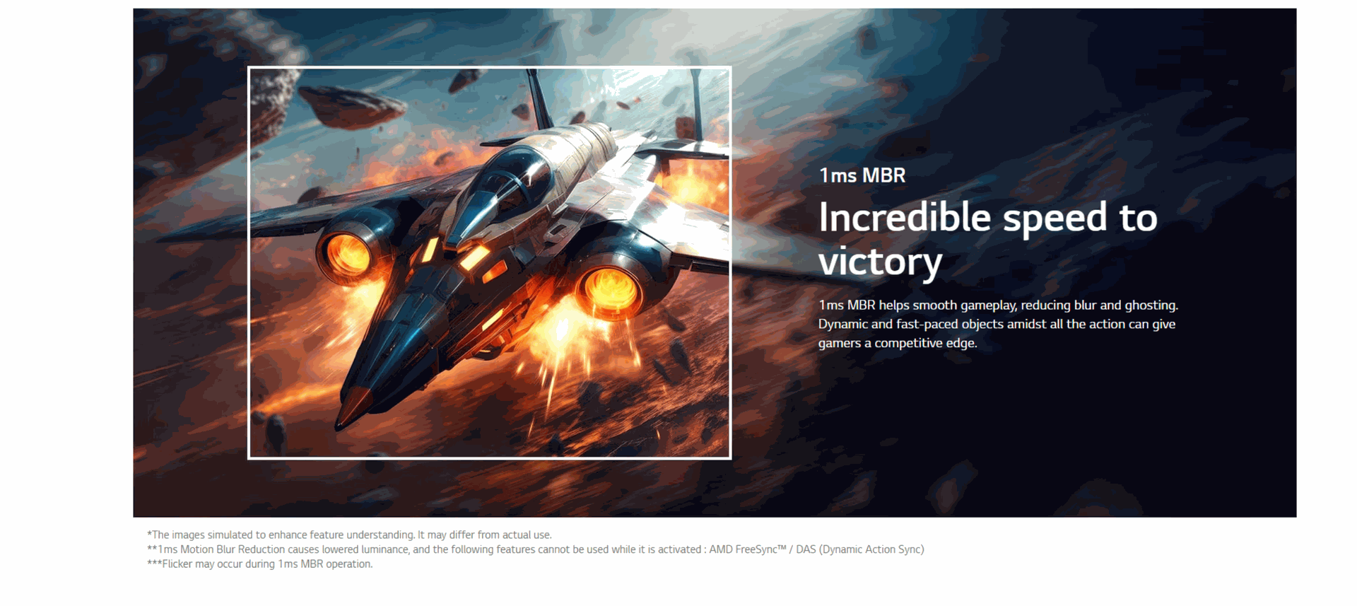 1 ms Motion Blur Reduction (MBR): Reduces blur during rapid movement.