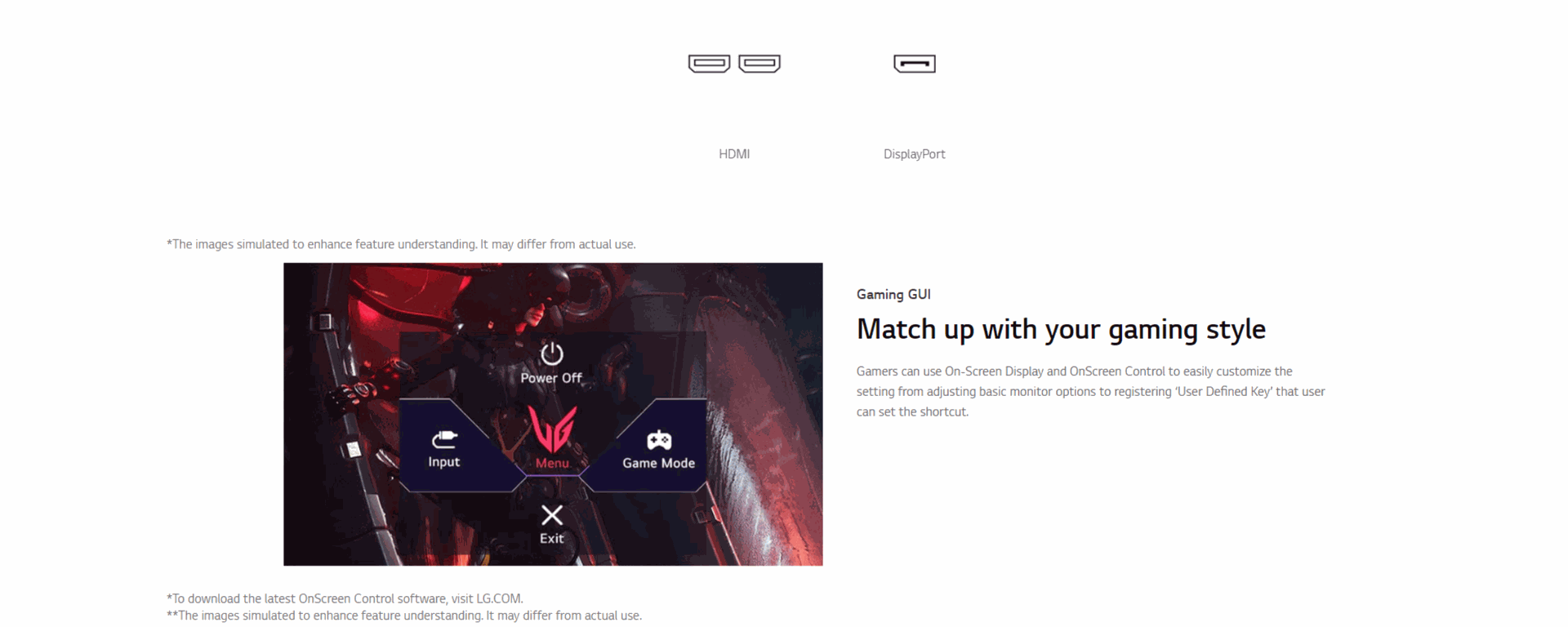 | Inputs | HDMI, DisplayPort, Headphone out |