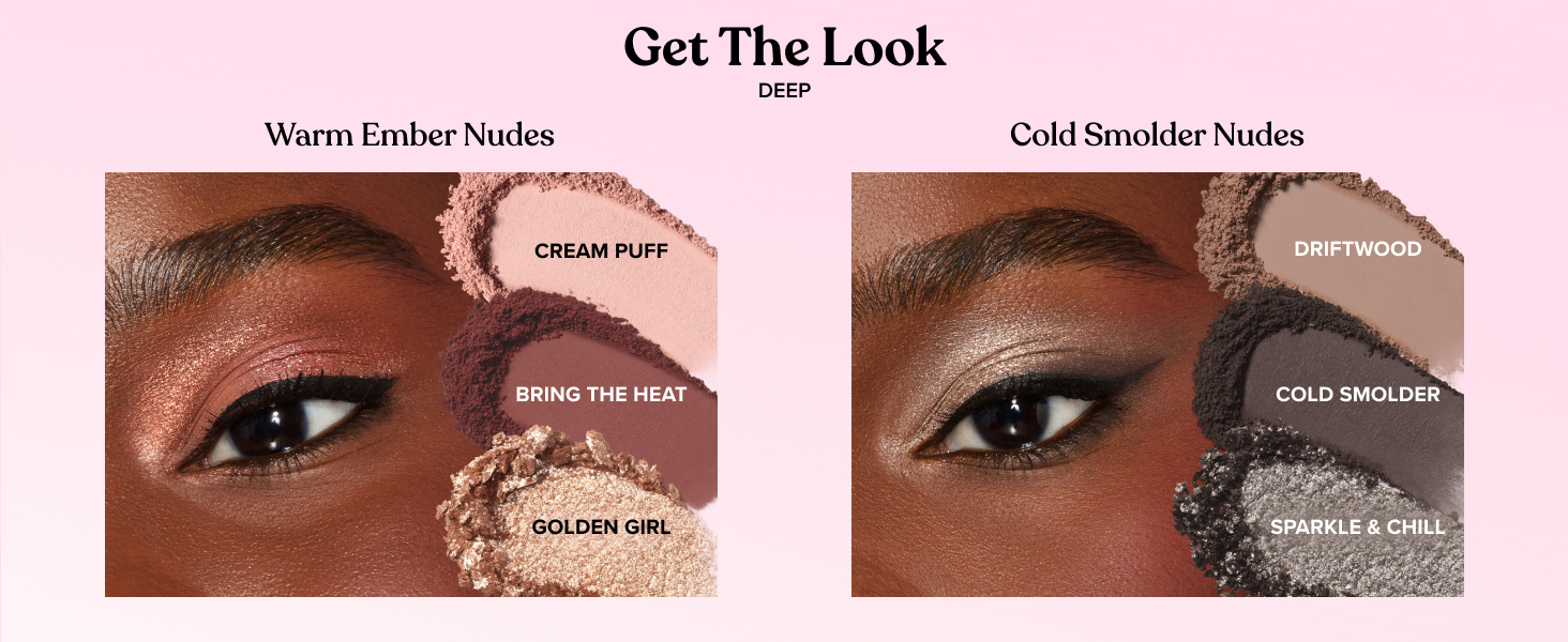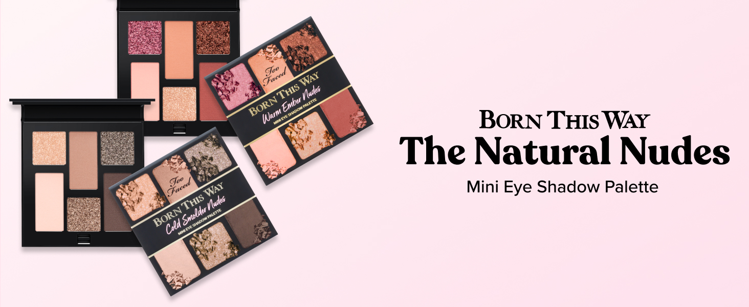Too Faced Born This Way Mini Eye Shadow Palette – Warm Ember Nudes features a range of warm nude hues in matte and shimmer finishes for easy, versatile looks.