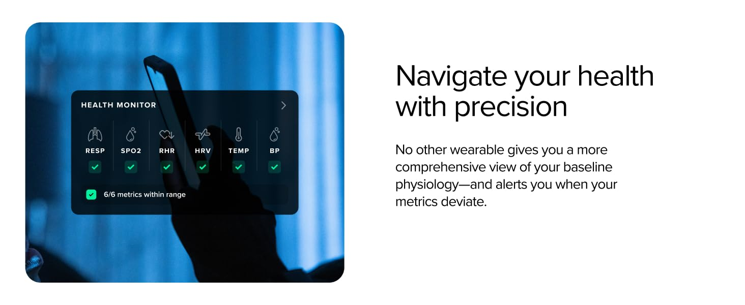 24/7 Monitoring Continuously tracks strain, sleep, recovery, heart rate variability, and more to provide coaching and health feedback.