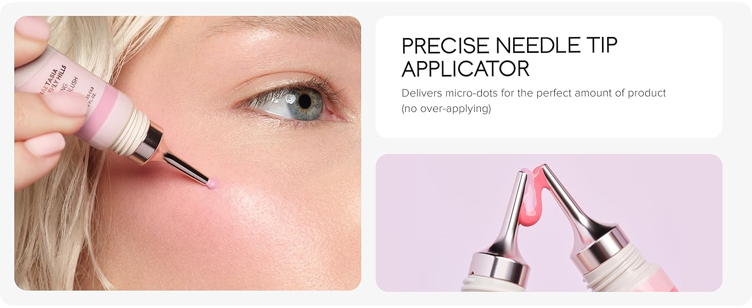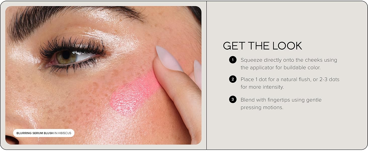 Apply a small amount to the cheeks using the applicator or fingertips. Blend quickly with fingers, a brush, or a sponge. Build gradually for the desired intensity.