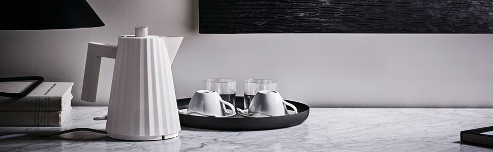 Designed by Michele De Lucchi and made of thermoplastic resin, the Plissé kettle combines functional aspects with a plastic and fascinating design that reveals the creator's architectural background, as well as his passion for handicraft and for sculpture. Like a dress sculpted by a fashion designer, this kettle is a beautiful object to be left on display on your kitchen top.