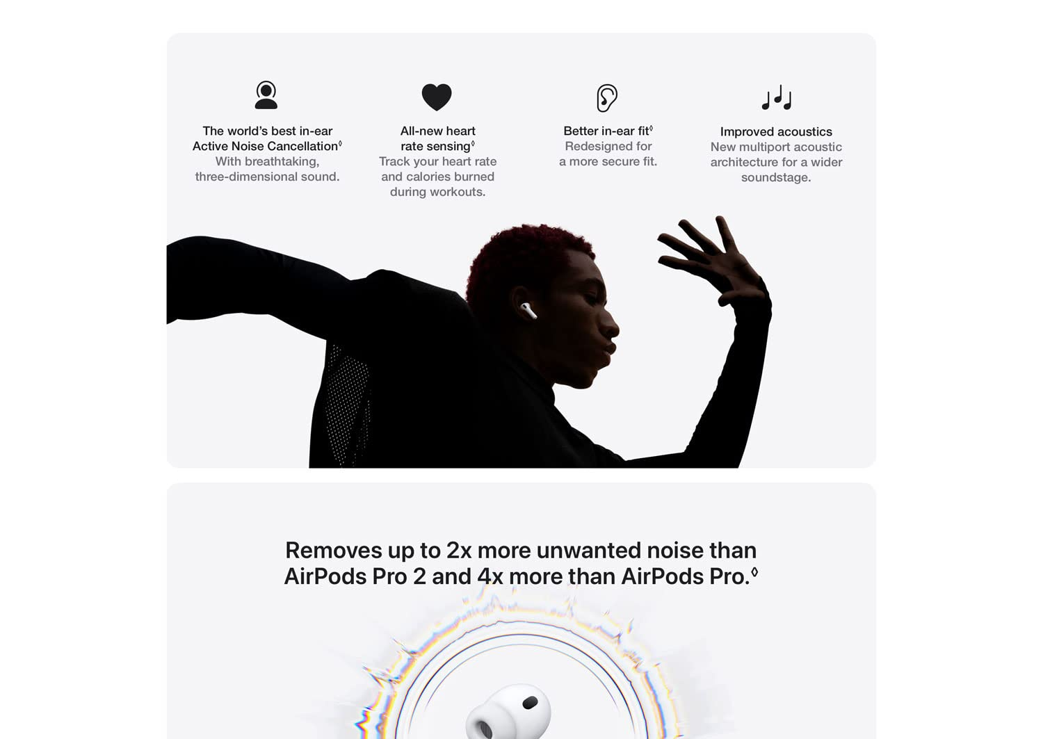 Best‑in‑class Active Noise Cancellation (ANC): Up to 2× more effective than AirPods Pro 2 and 4× more than the original AirPods Pro.