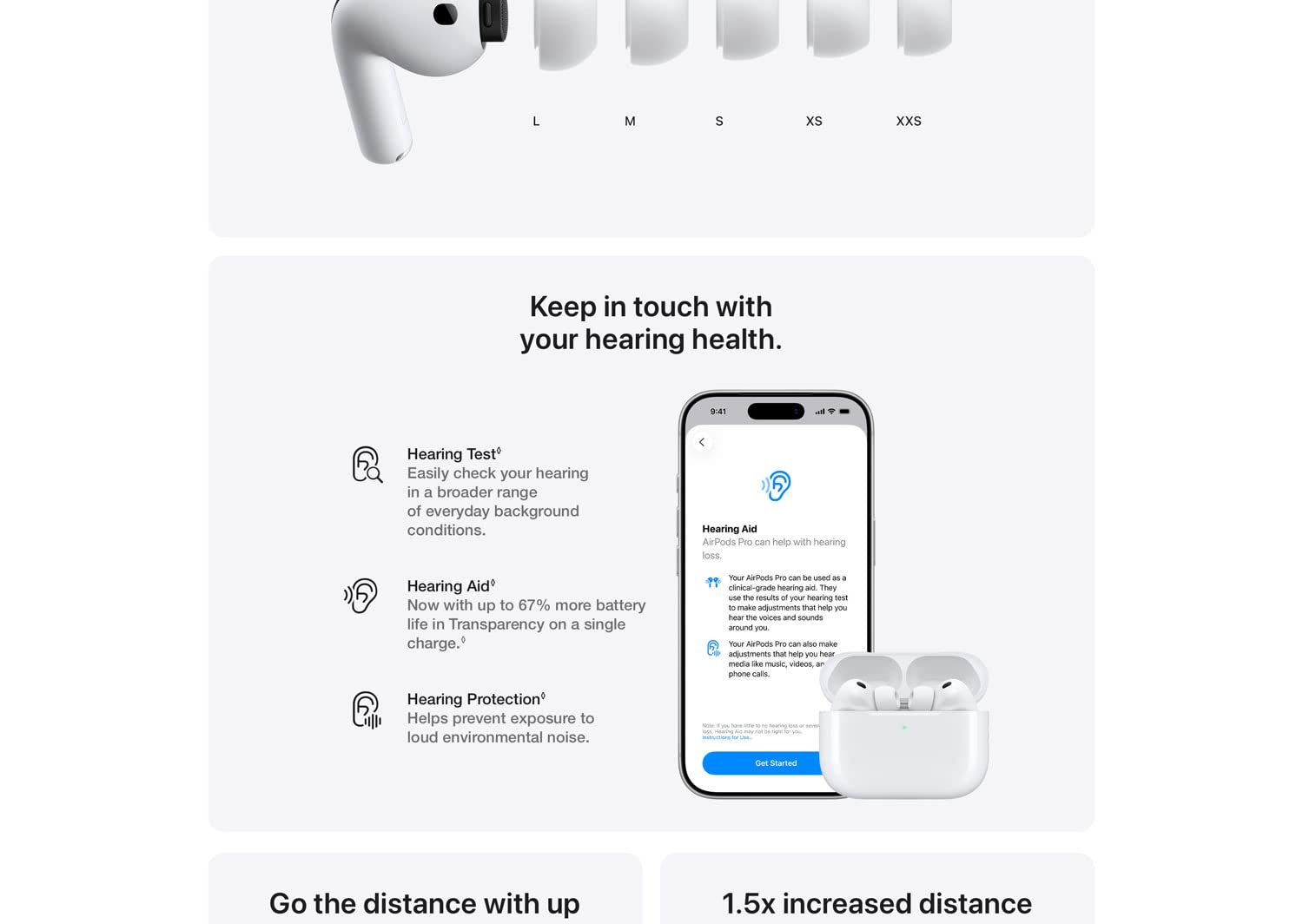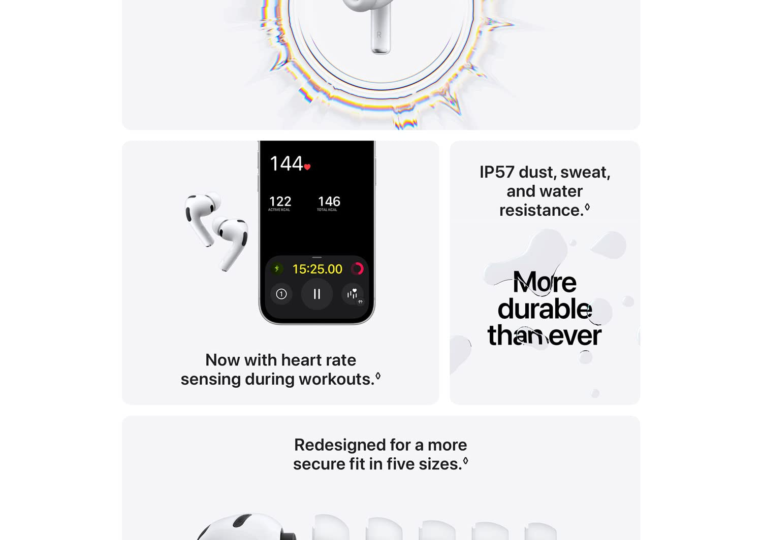 Redesigned fit & ear‑tip system: Five sizes, including XXS; optimized with data from over 10,000 ear scans for comfort, seal, and stability.