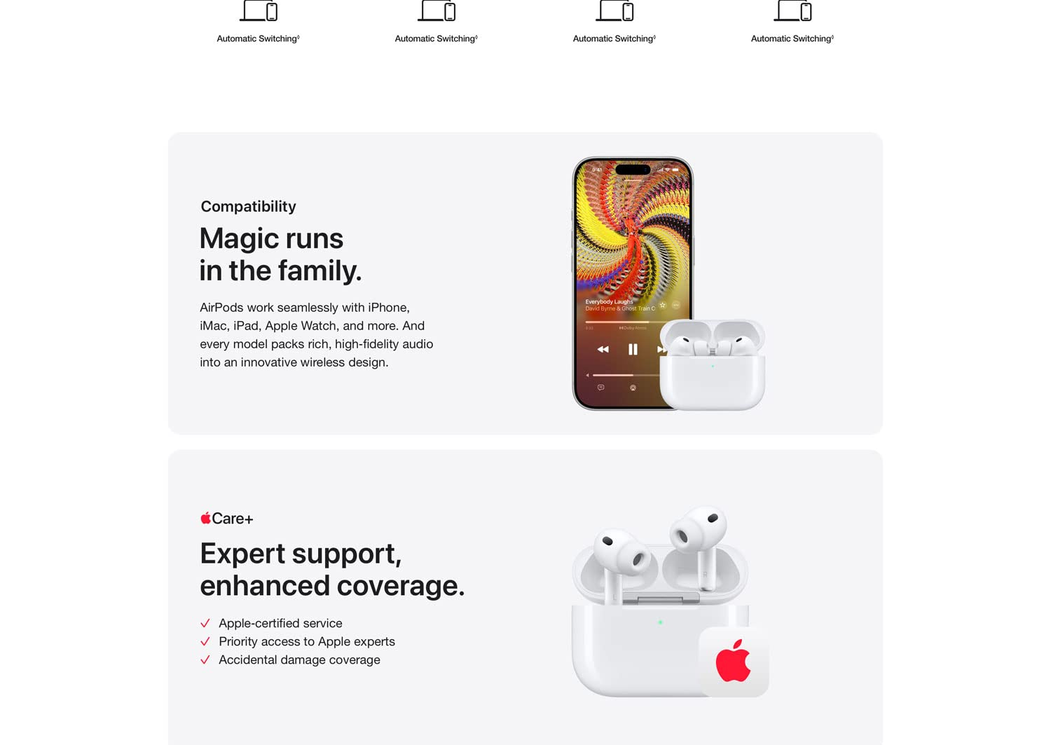 Extended listening time: Up to 8 hours of listening with ANC in a single charge; up to ~24 hours total with MagSafe/USB‑C charging case.