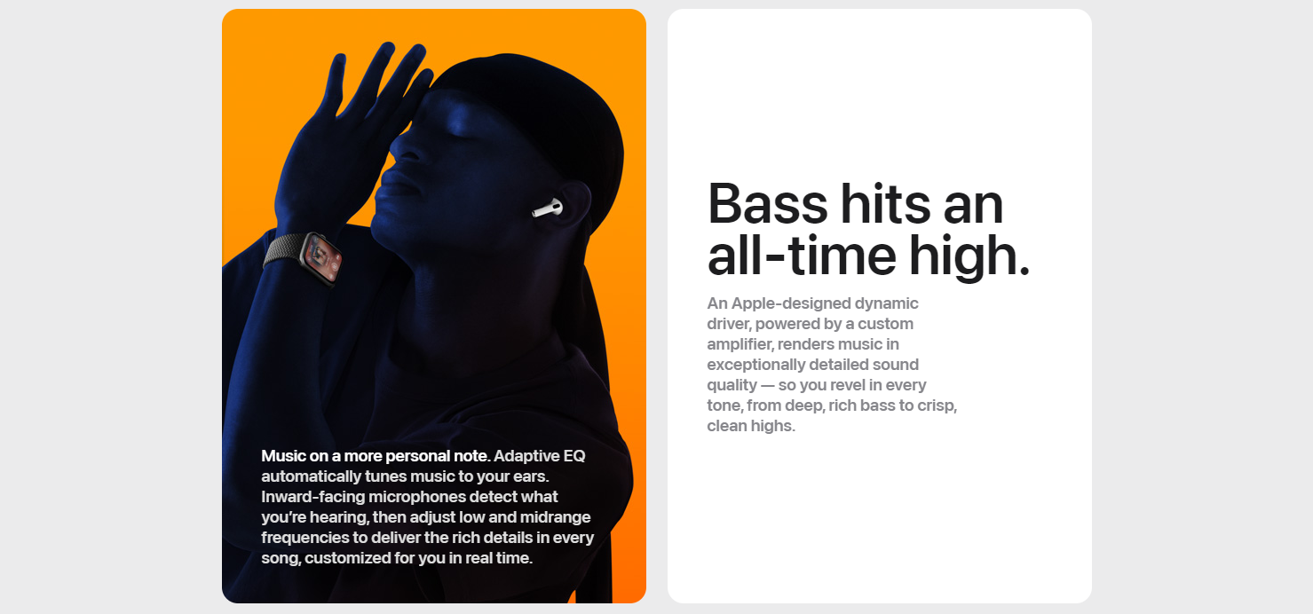 Adaptive EQ: Customizes sound in real time based on ear fit and shape.