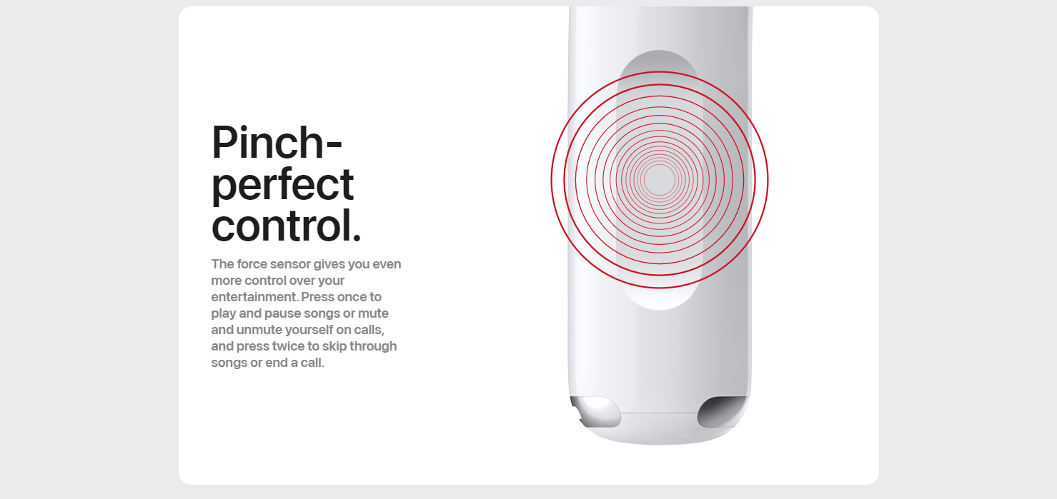 Force Sensor Controls: Easily control music, calls, and Siri with a squeeze.