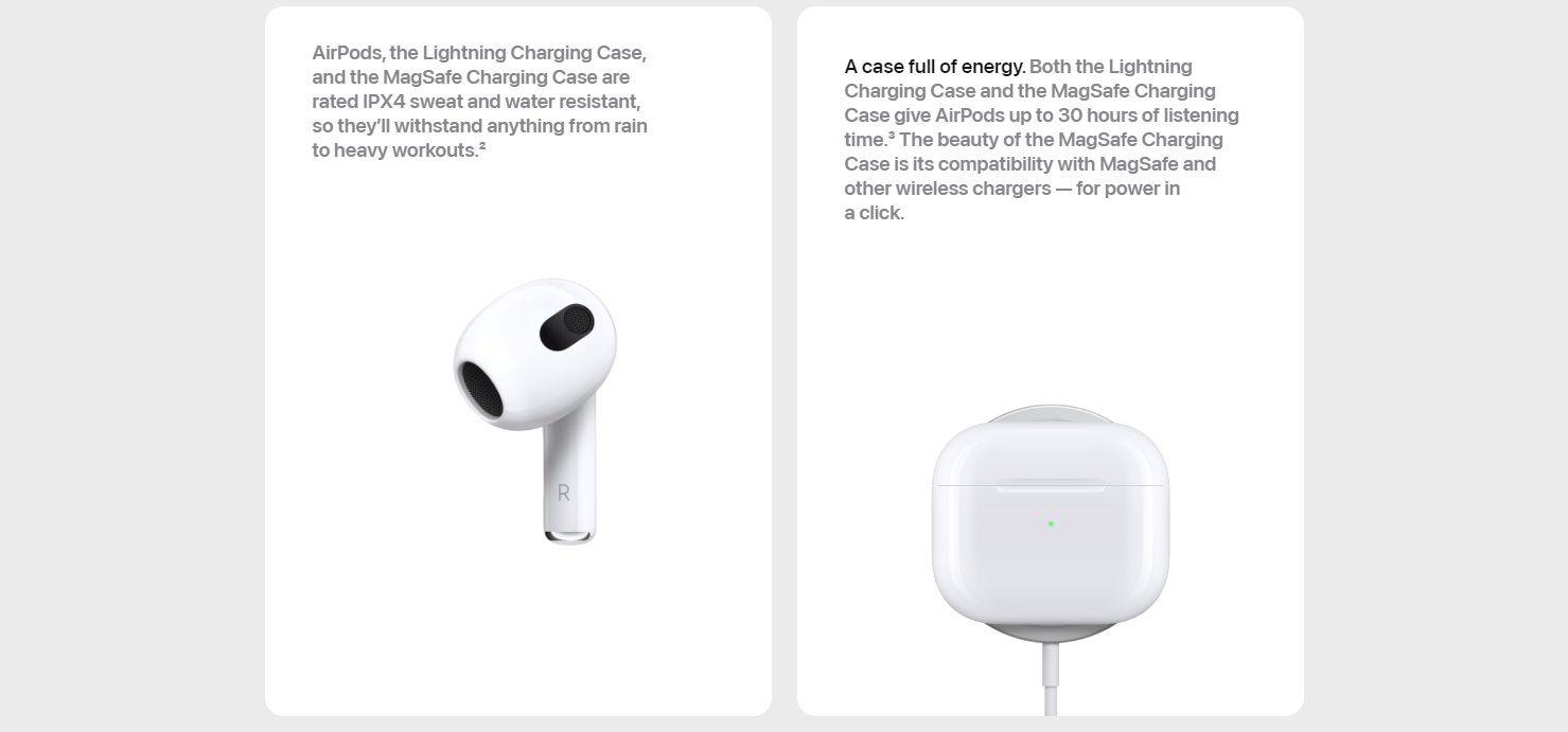 | In the Box | AirPods (3rd Gen), Lightning Charging Case, Lightning to USB-C Cable |
