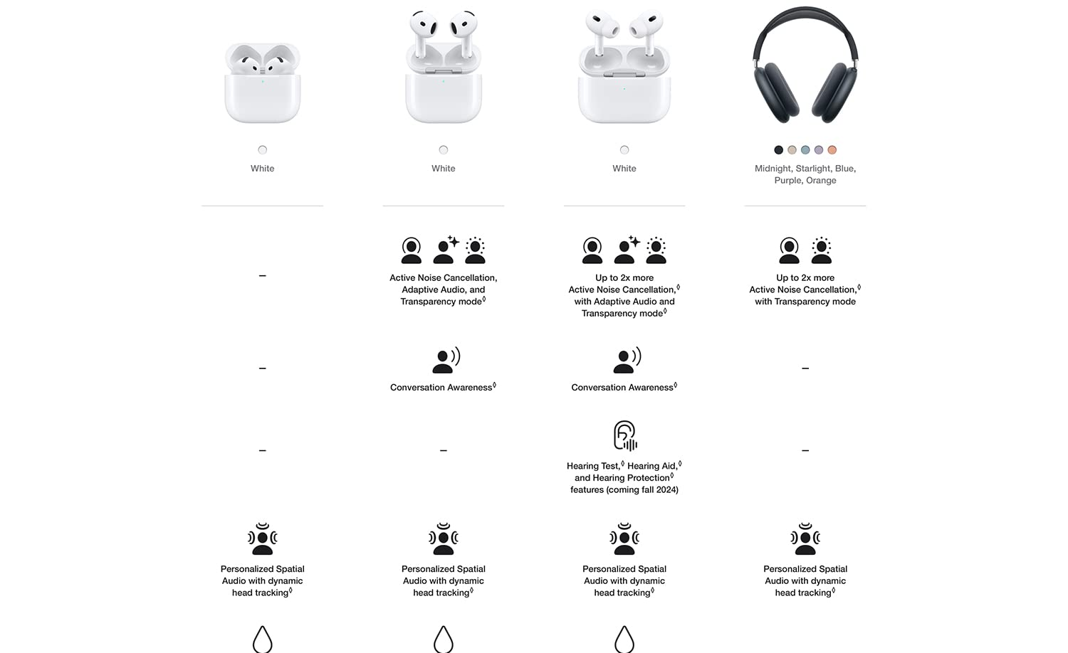 Conversation Awareness: When you start speaking, media volume drops, and you hear your surroundings more clearly.
