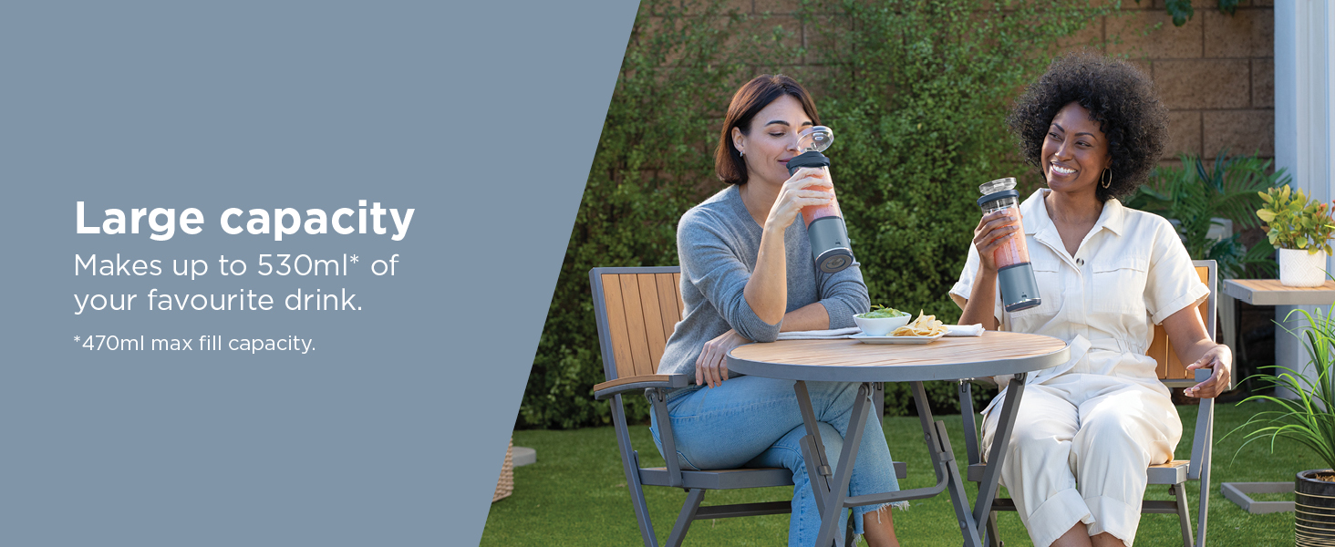 Special Features | Portable, USB-C Rechargeable, BPA-Free 530ml* Cup (*470 max fill), Leak-Proof Lid & Sip Spout, Carry Handle, Blade & Cup Covers |