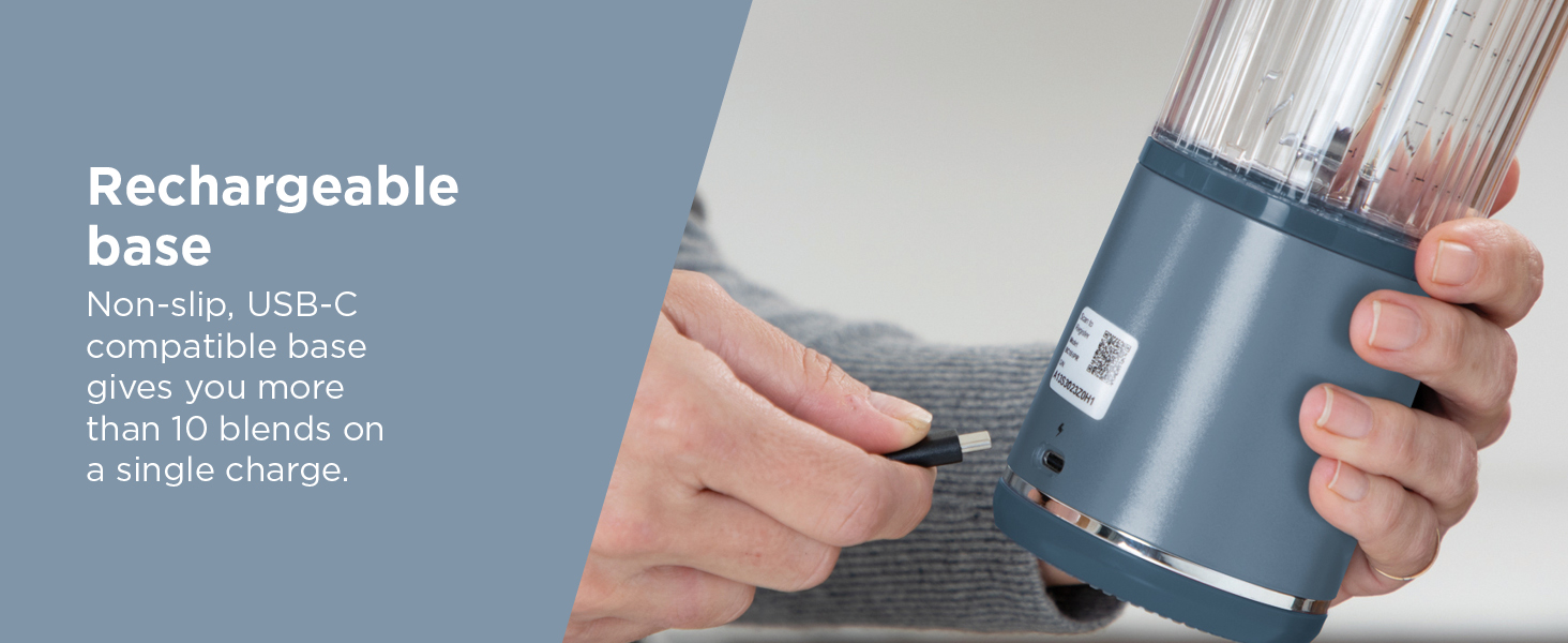 | Included Accessories | Motor base, 18 oz Tritan™ cup, sip lid, USB-C cable |