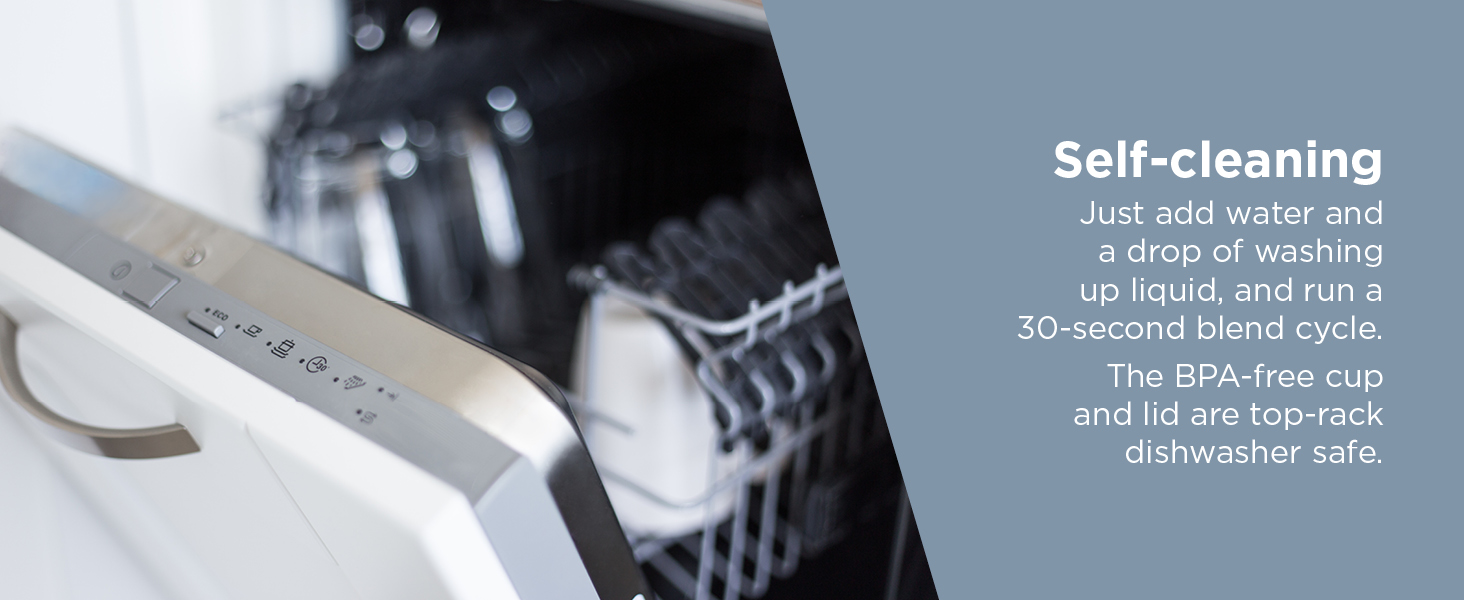 Easy to Clean: Dishwasher-safe cup and lid; rinse-and-go base