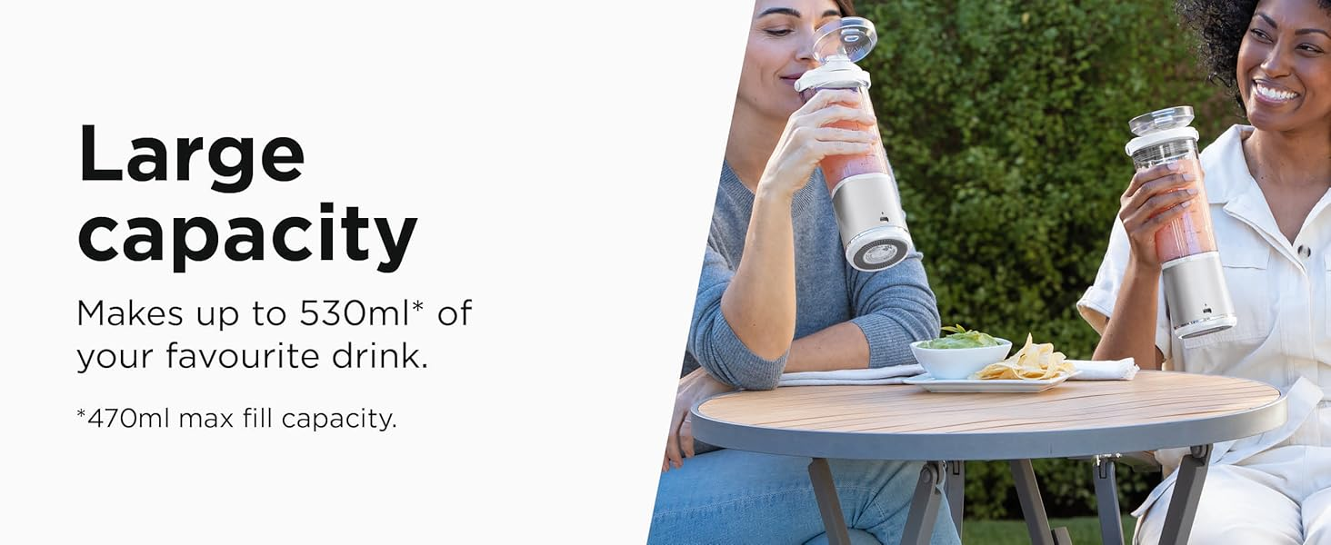 | Included Accessories | Motor base, Tritan™ blending cup, sip lid, USB-C charging cable |