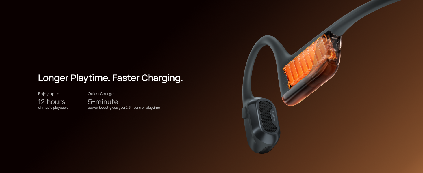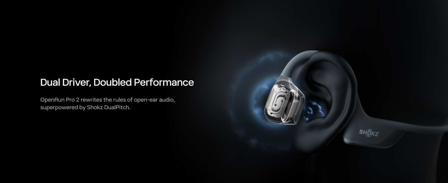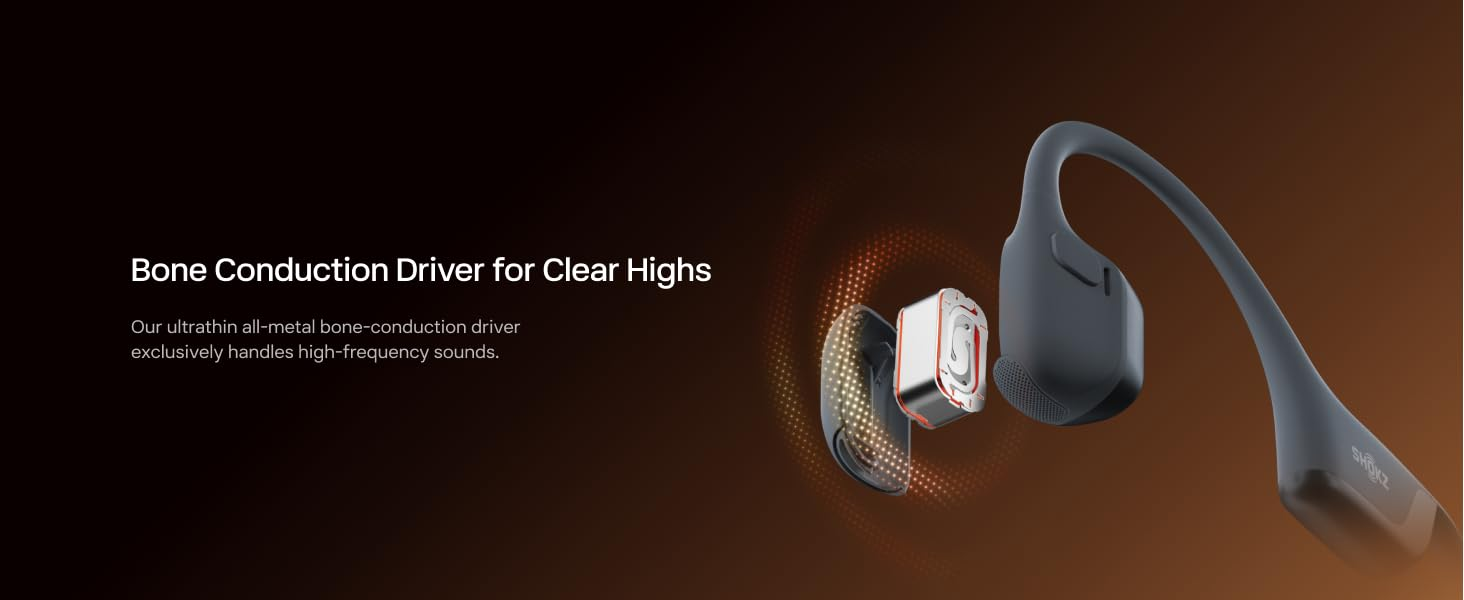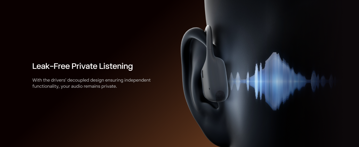 DualPitch™ Hybrid Drivers: Bone‑conduction for mids/highs + air‑conduction for bass for richer, fuller sound in an open‑ear format.